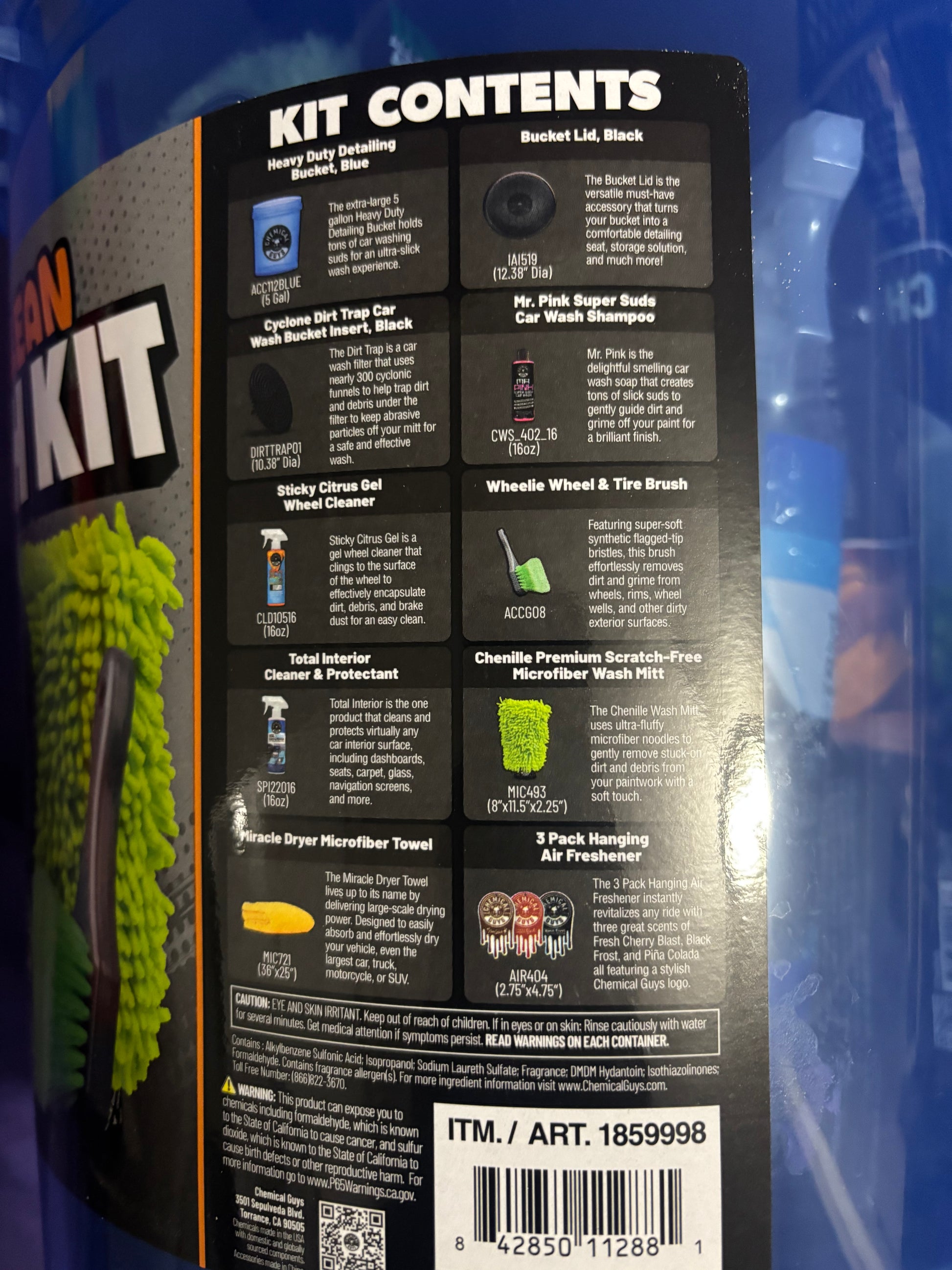 Get your ride sparkling with the Chemical Guys Complete Clean 12-Piece Car Wash Kit! This fun and handy set has everything you need to wash, scrub, and shine your car like a pro. From sudsy soaps to soft mitts, it makes cleaning a breeze and leaves your car looking fresh and fabulous. Perfect for anyone who loves a clean car and a little splash of fun!